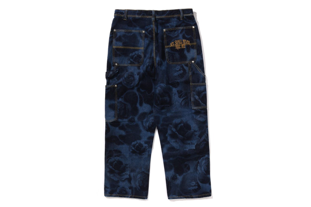 FLORAL CAMO 柄をジャガードで表現した13.5ozのデニム素材を使用したペインターパンツ。両脇にスラッシュポケット、バック左右にパッチポケット、両側面にツールポケットを配置。左腿・右ヒップポケットにブランドロゴを直刺繍で表現。裾口にスピンドルを付属、ヘム幅調整が可能。ウエスト・レッグにゆとりのあるシルエット。