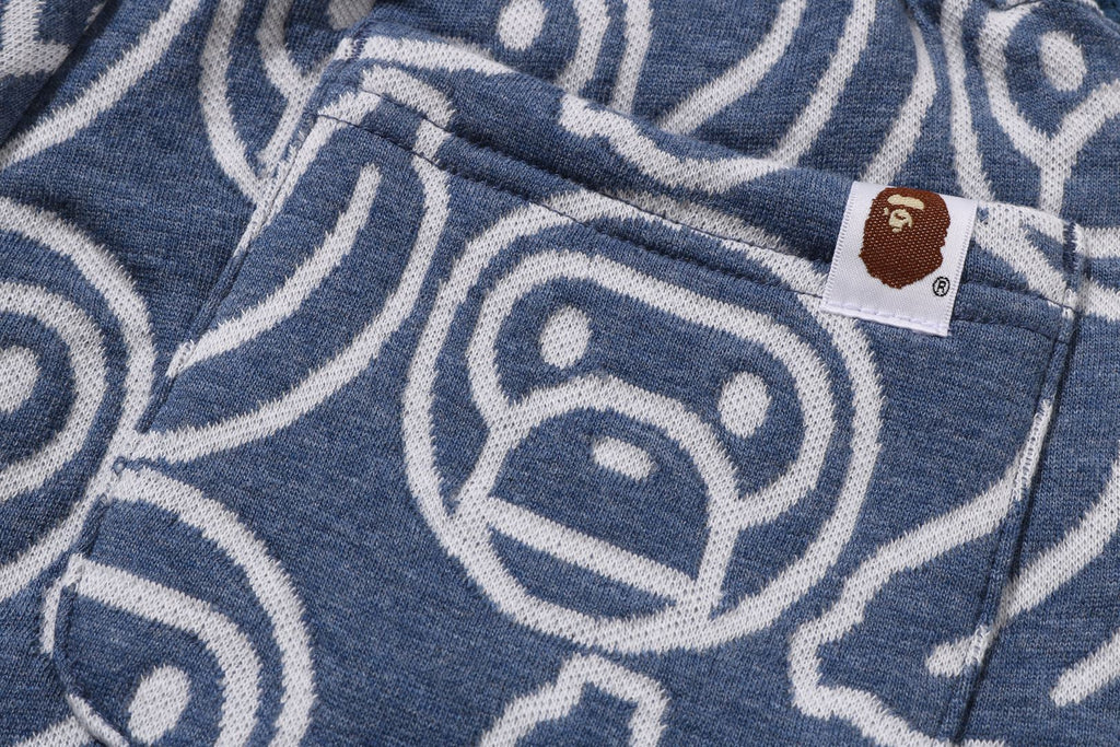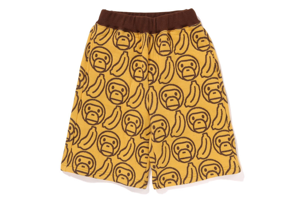 表地・裏地をコットン・中綿にポリエステル素材を使用したニットショーツ。身頃全体にBANANA MILO柄をジャガードで表現。両脇にスラッシュポケット、バック右にパッチポケット、ポケット縁にピスネーム。ウエストはゴム仕様。