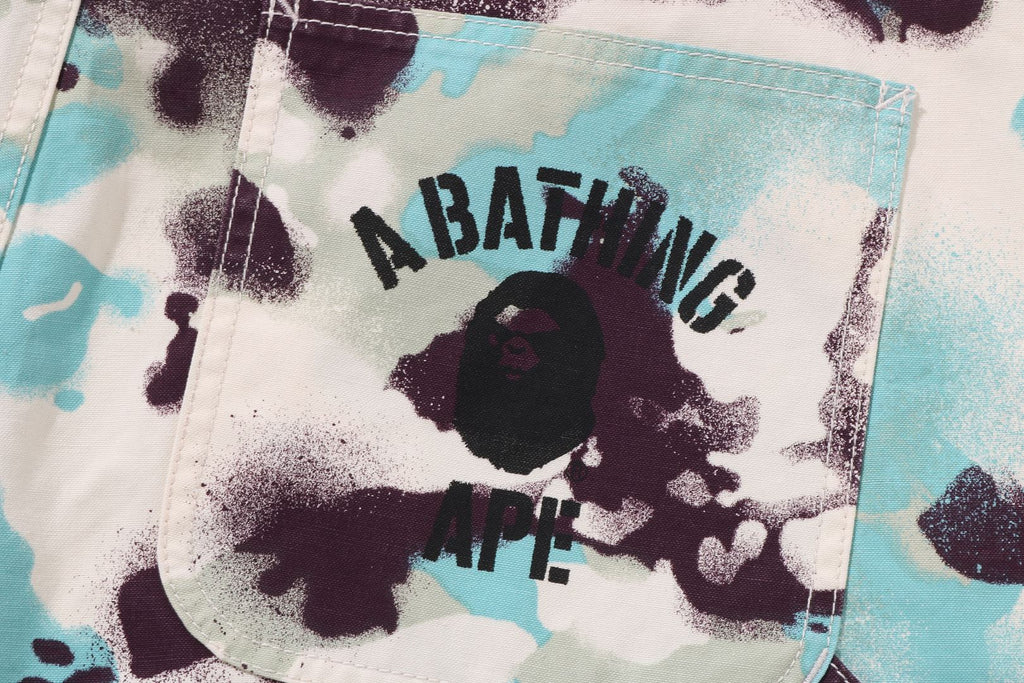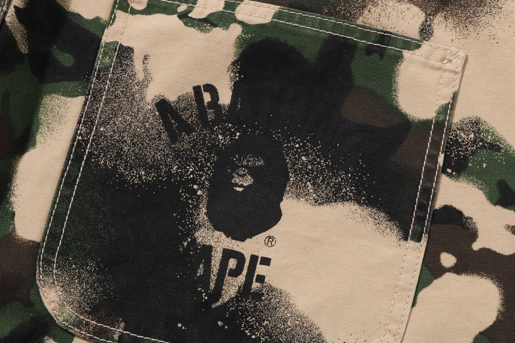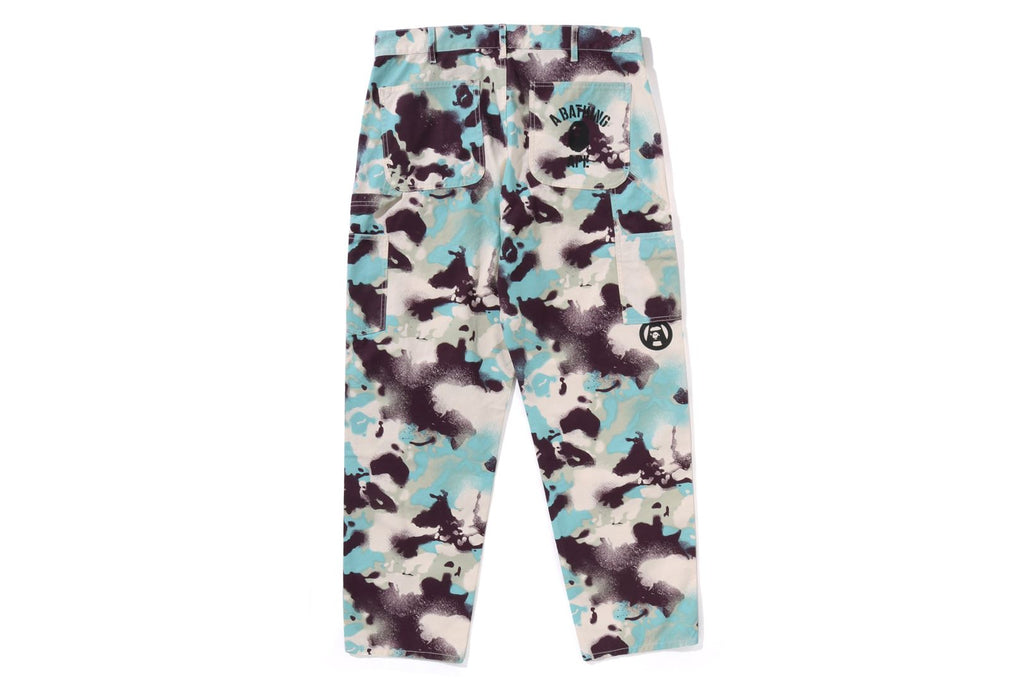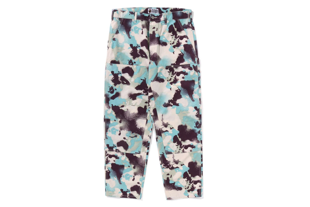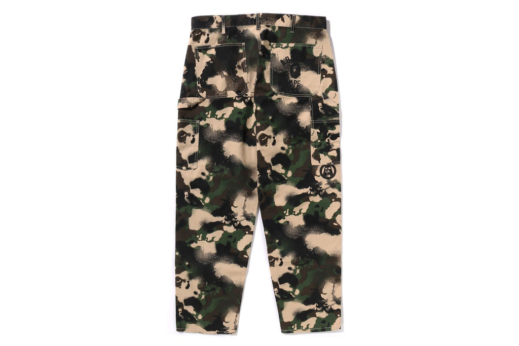 ウォッシュ加工を施したMAP CAMO柄のワークパンツ。