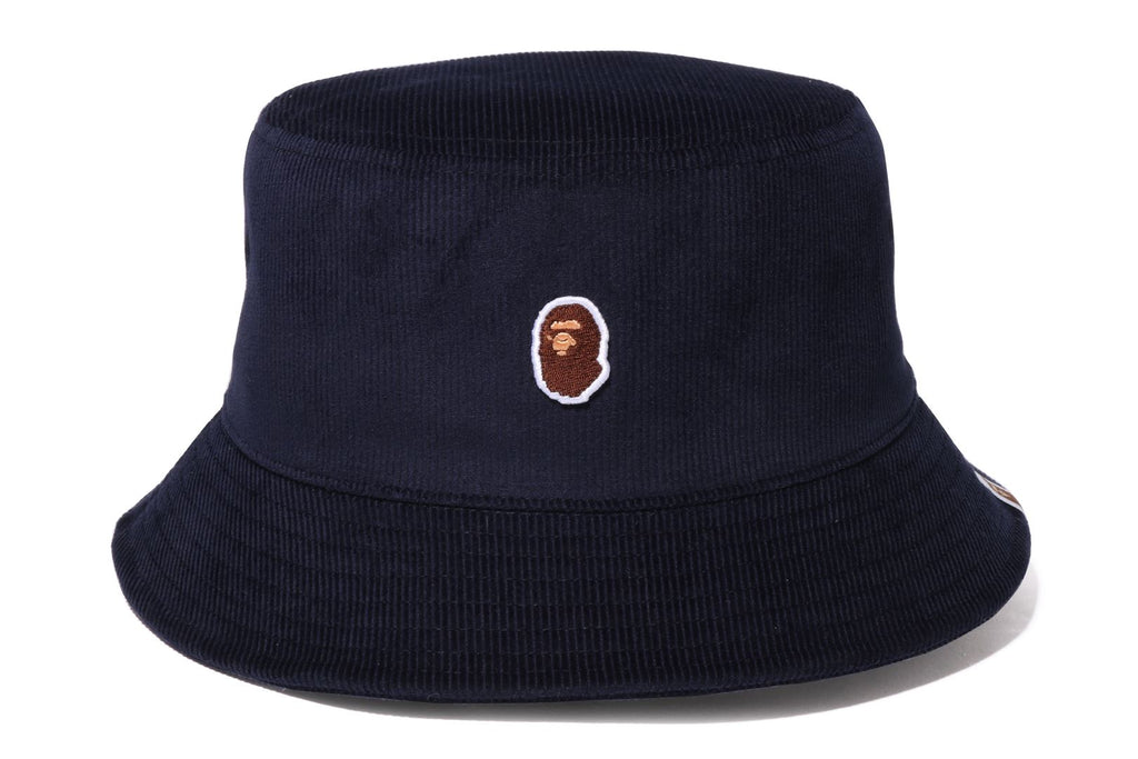 コットン素材のコーデュロイ地を使用したバケットハット。フロントパネルにAPE HEADのワンポイントワッペンを叩きつけ、左パネルにベンチレーションホールを配置、ブリム左端にピスネームを挟み込み。3色2サイズ展開。
