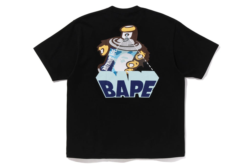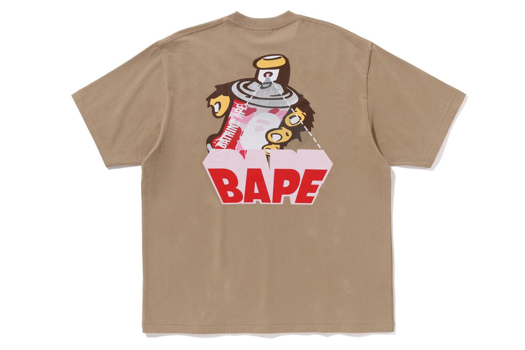 コットン天竺のオリジナルボディを使用したショートスリーブTシャツ。左胸にBAPEロゴ、バックにGRAFFITIグラフィックをラバープリントで表現。左袖にピスネームを挟み込み。身幅にゆとりのあるシルエット。