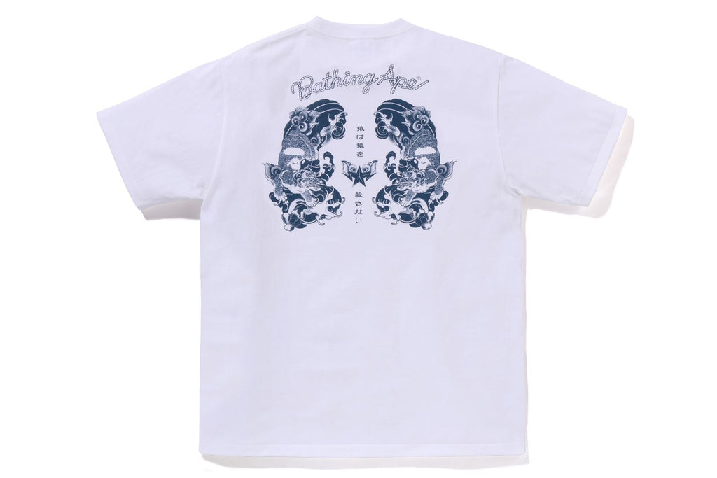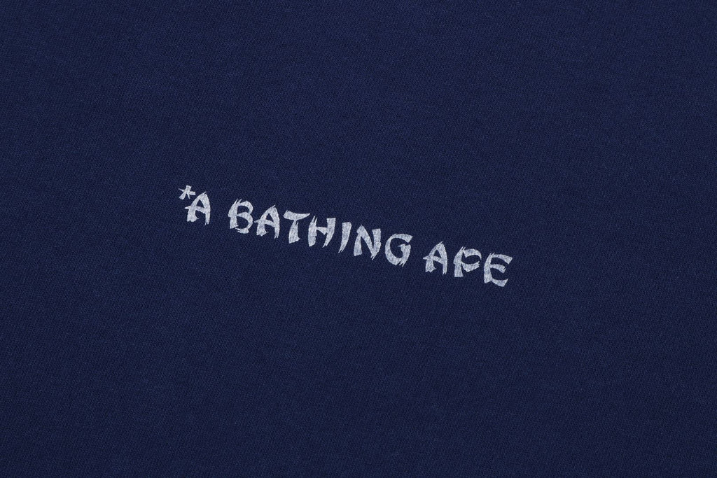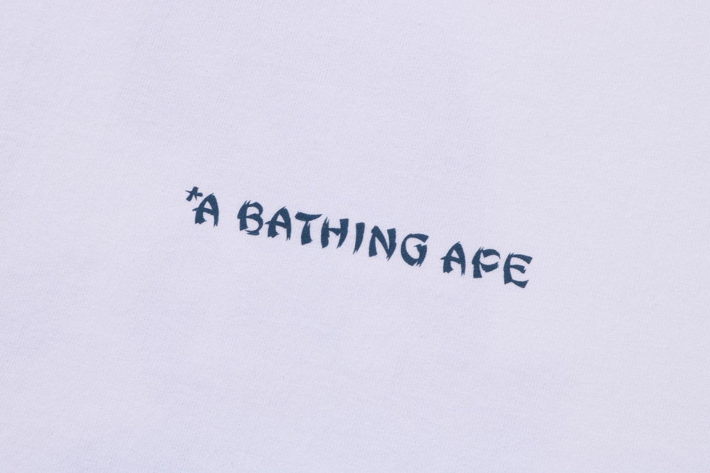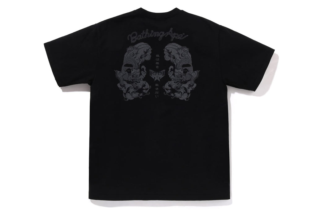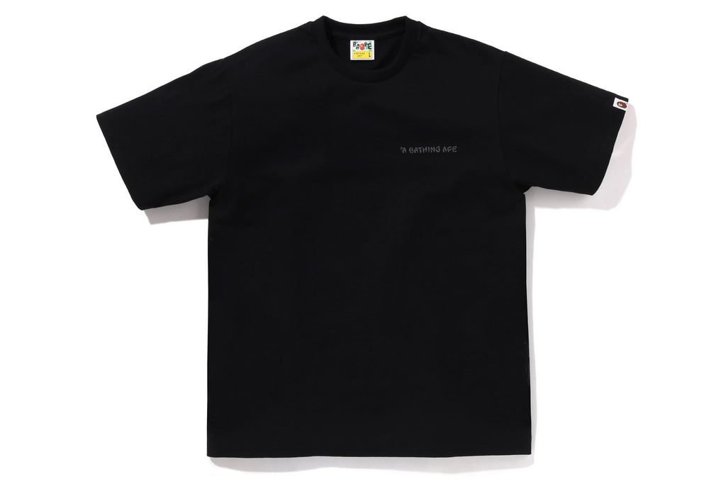 USA製コットンで作成したオリジナルの丸胴ボディを使用したショートスリーブTシャツ。左胸にブランドロゴ、バックにJAPANESE TATTOO調にアレンジしたAPE HEADモチーフのラバープリント。左袖にAPE HEADピスネーム。レギュラーフィットシルエット。