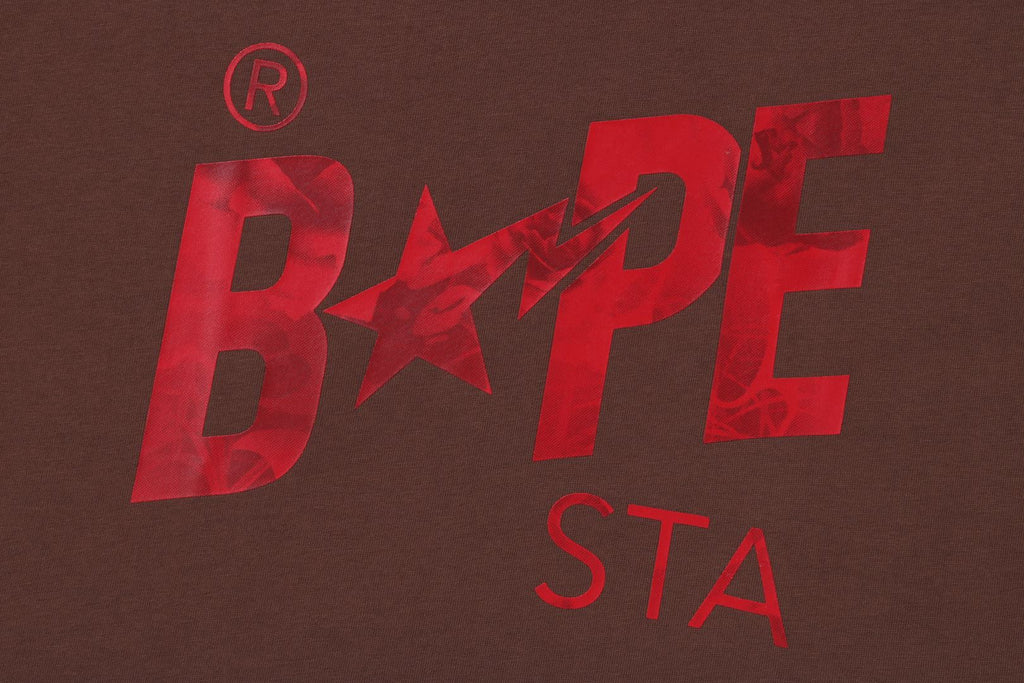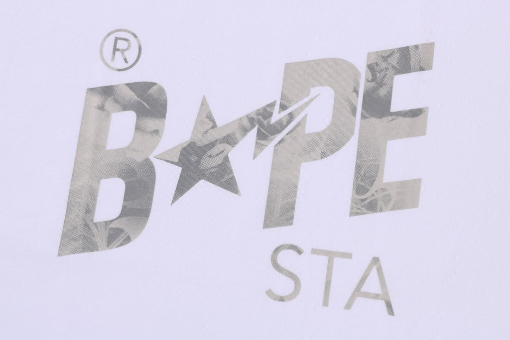 オリジナルで作成したコットン天竺素材使用したショートスリーブTシャツ。フロントにFLORAL SOLID CAMO配色にアレンジしたBAPE STAロゴをプリント。左袖にAPE HEADピスネーム。身幅にゆとりのあるシルエット。