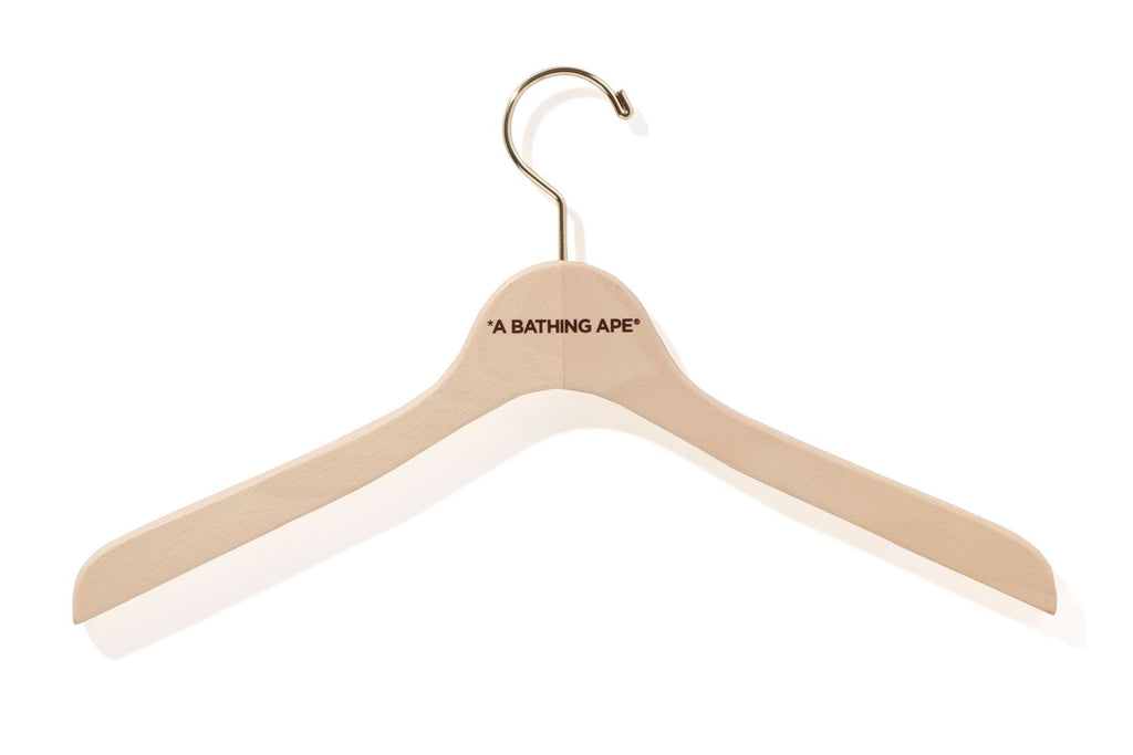 素材にブナ材を使用したフラット型のメンズジャケット用ハンガー。表面にAPE HEAD、裏面にブランドロゴをシルクスクリーンでプリントしたデザイン。1色1サイズ展開。