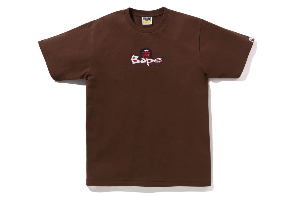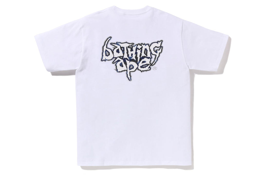 USA製コットンで作成したオリジナルの丸胴ボディを使用したショートスリーブTシャツ。フロントにMAD APE・ブランドロゴ、バックにグラフティアンレジをしたA BATHING APEロゴをクラックプリントで表現したデザイン。左袖にピスネームを挟み込み。レギュラーフィットシルエット。