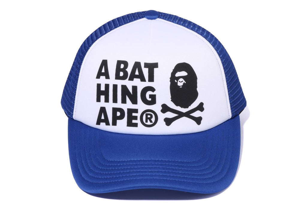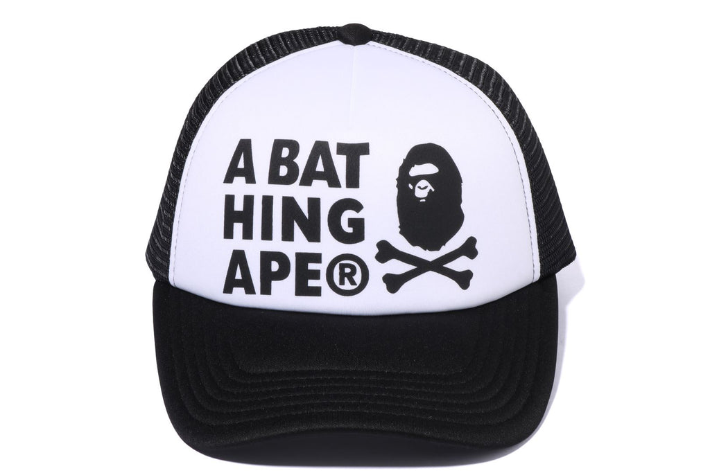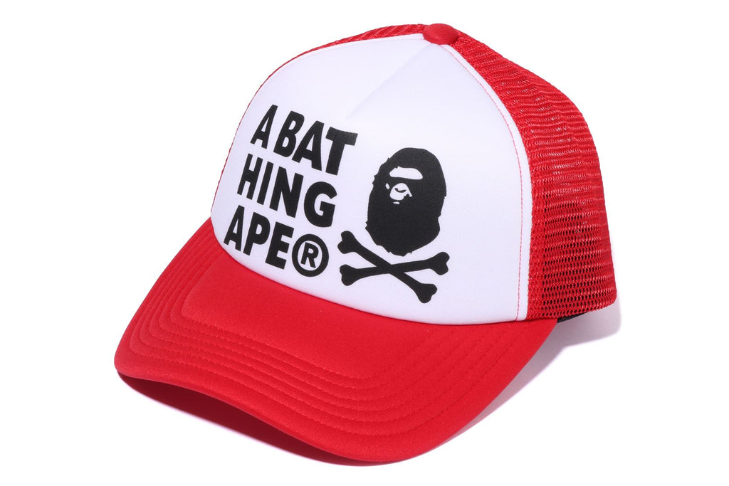 APE CROSSBONE ロゴをプリントしたメッシュキャップ。